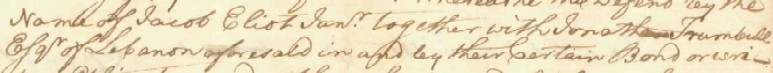 Below are enlargements of the writ where "Jonathan Trumbull, Esq. of Lebanon" and "Jonathan Trumbull Esq." are cited.