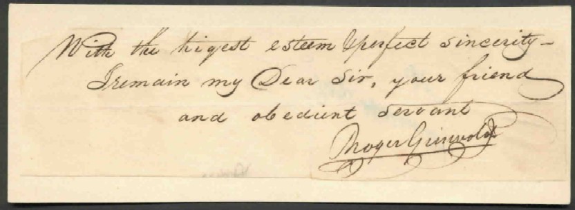 Federalist Governor Roger Griswold Signed Document Congressman, Judge and Governor who refused President Madison's call for troops in 1812