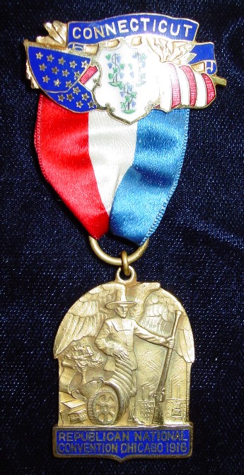 Beautiful Connecticut Delegate Ribbon Badge for the 1916 Republican National Convention