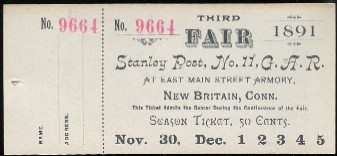 1891 Grand Army of the Republic Season Ticket at New Britain Fair