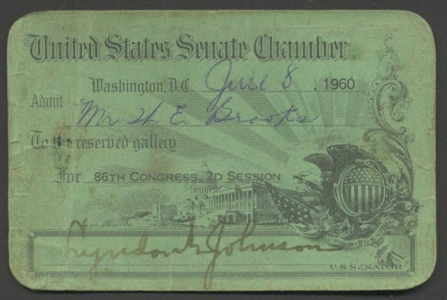 Lyndon Johnson 1960 Senate Chamber Gallery Pass