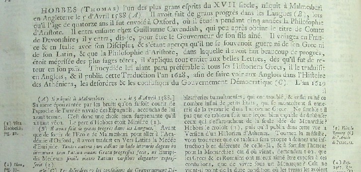 Pictures of the first page of the text and the start of the entries for Dante and Thomas Hobbes are shown below. Included with the book are two contemporary books on Bayle's dictionary explaining its significance as well as providing selections from the Dictionary. The covers of the included books are shown below. The first provided an introduction and extensive selections from the Dictionary translated by Richard H. Popkin and the second book edited by Sally L. Jenkinson analyzes his political writing and again the bulk of the text is excerpts from the Dictionary.