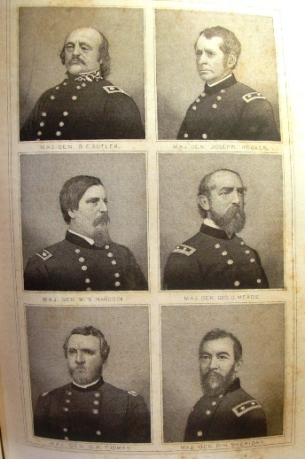 Published in Hartford, Connecticut in 1865 by L. Stebbins, the year the war ended. Spine with gilt lettering and blind-tooled fillets, cover with blind-tooled borders. 4to Illustrated with a tissue-guarded steel-engraved portrait of Abraham Lincoln, 39 tissue-guarded steel-engraved plates and 13 maps showing all the important military points. 778 pages. Most of the pages with tissue guards for the steel engraving are foxed, including the title page which is opposite the Lincoln frontpiece engraving, but the text is not, as shown below is largely devoid of foxing.