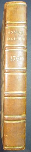 An interesting volume and another tour de force by Edmund Burke. The 1760 volume is also available as a part of the 1758 through 1791 set in a first edition and in the 1758 through 1773set in a later edition. Price: $85 Pay securely with credit card through PayPal by clicking the button below |