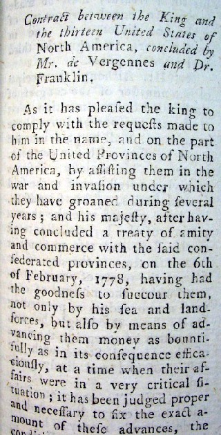 Below left is the signature page for the final peace treaty with England and below right the start of the contract between the French King and the United States that was signed by Benjamin Franklin which called for America to pay back 18 million livres of loans given by France during the Revolutionary War.