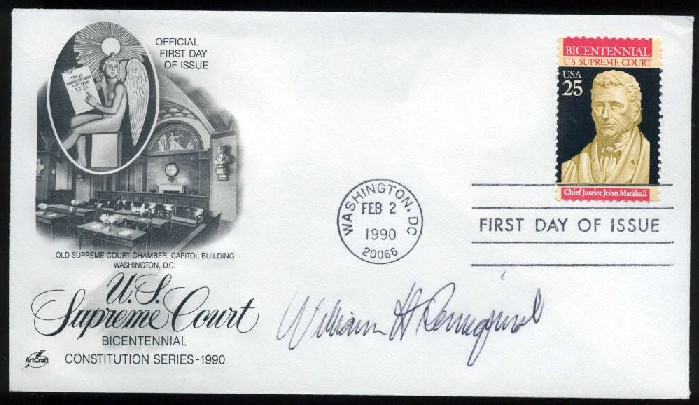 Chief Justice William Rehnquist Signed First Day Cover Commemorating 200th Anniversary of Supreme Court