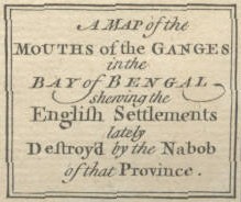"A Map of the Mouths of the Ganges in the Bay of Bengal Shewing the English Settlements lately Destroy'd by the Nabob of that Province."