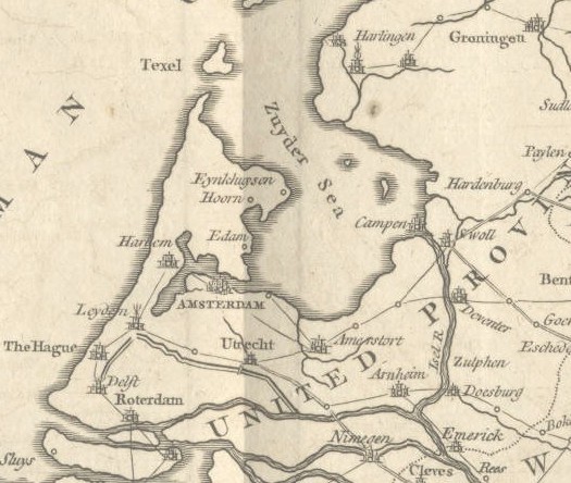The close-up below shows the Netherlands with the The Hague, Rotterdam, Amsterdam and Groningen.