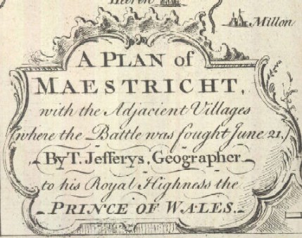 A Plan of Maestricht, with the Adjacent Villages, where the Battle was Fought June 21. By T. Jefferys, Geographer to His Royal Highness the Prince of Wales