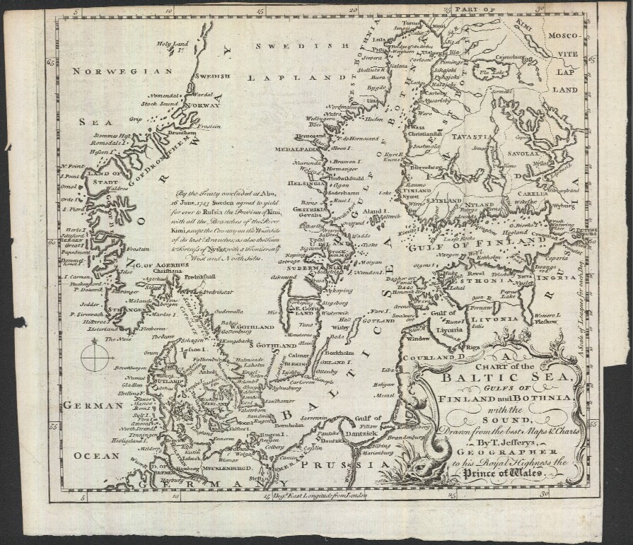 "A Chart of the Baltic Sea, Gulfs of Finland and Bothnia, with the Sound, Drawn from the Best Maps & Charts by T. Jefferys, Geographer to His Royal Highness the Prince of Wales"