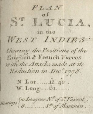 "Plan of St. Lucia, in the West Indies: Shewing the Positions of the English & French Forces with the Attacks Made at its Reduction in Decr. 1778"