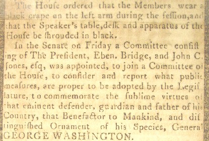 Here are some more excerpts in the newspaper on George Washington's then very recent death.