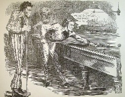 (Lincoln and Jeff Davis playing pool and Davis has more victories so far)