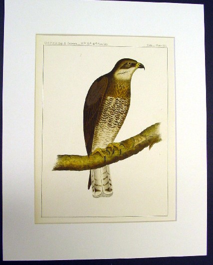This is one of the three Swainson's Hawks we offer, also known by its scientific name Buteo Swainsoni. On the upper margin of the print it says "U.S.P.R.R. Exp. & Surveys ---38th, 39th, 41st Parallels" and "Birds --- Plate XII." Below is the lithograph as it will come to you matted and in a protective clear plastic sleeve.
