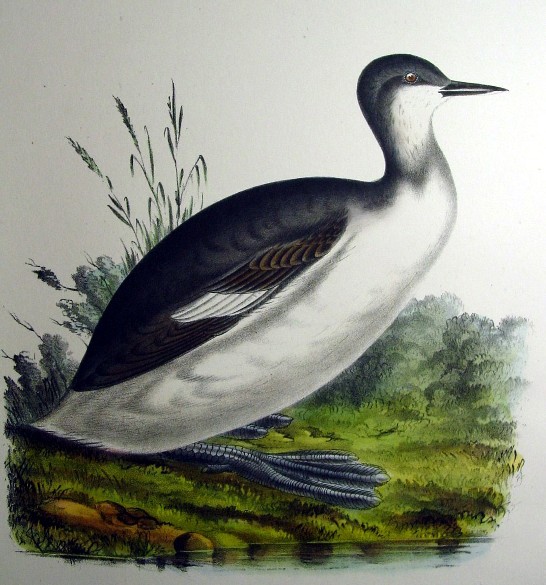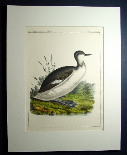1850s Hand Colored Stone Lithographs of Birds of the West Western or California Grebe
