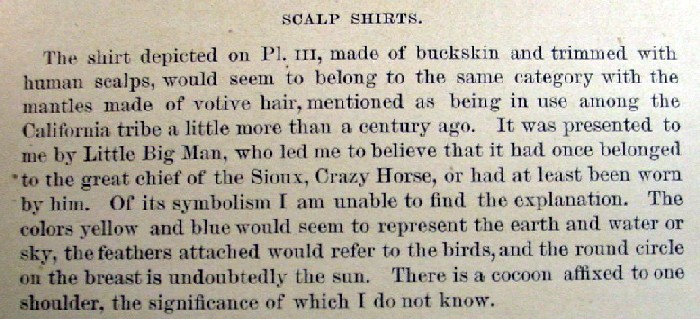 This Crazy Horse and Little Big Man scalp shirt is colorful, well designed, historic and a great conversation piece! Price: SOLD Back to Bureau of Ethnology Home Page