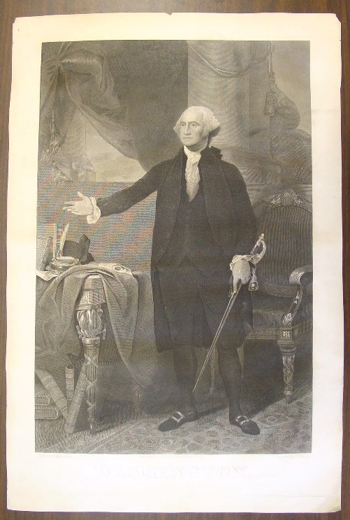 This engraving of George Washington that was engraved and published by Oliver Pelton of Hartford Connecticut is an interesting rendition of Gilbert Stuart's famous painting for two reasons. First, another copy of this engraving by Pelton of Washington was in Abraham Lincoln's home in Springfield, Illinois when he was assassinated. In a web site maintained by the National Park Service there is a listing for Lincoln Home, Evidence of Original Furnishings, which records that the Chicago Historical Society was offered the following in 1937: