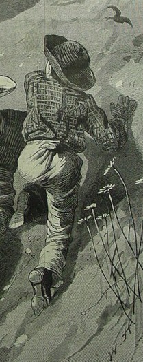 Below is a close-up that shows one of the mischievous boys climbing the sand dunes and the signature by Homer, "WH" in the sand in the right bottom corner.