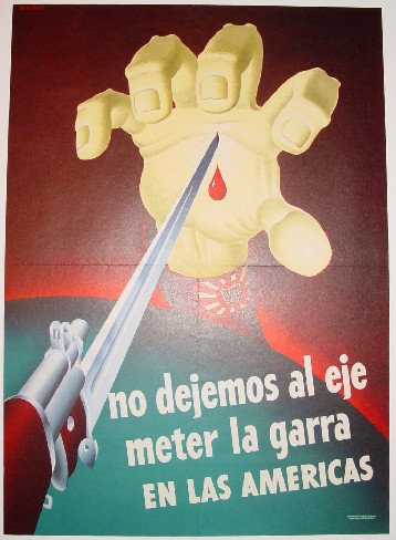 menacingly appearing over the edge of the globe to be met by a bayonet