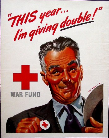 of his Red Cross pin and proclaims that "THIS year...I'm giving double!"